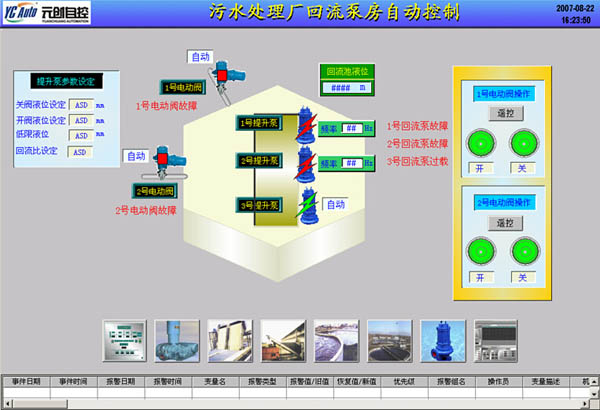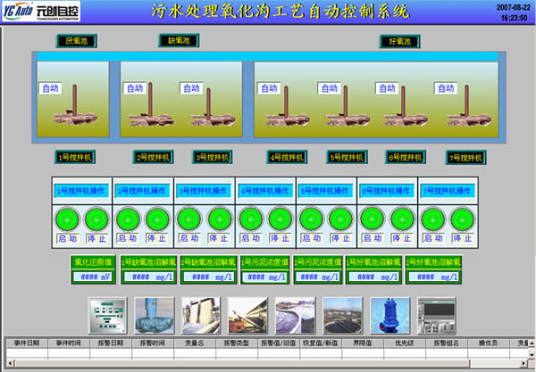 另外,污水廠自動化控制系統(tǒng)還可以實現(xiàn)日常生產(chǎn)調(diào)度和管理的自動化,可以通過工作站自動統(tǒng)計日常生產(chǎn)報表、日常事件記錄日志等文檔材料,可以自動記錄報警情況和生成歷史數(shù)據(jù)庫和歷史曲線,為生產(chǎn)狀況的分析提供方便。